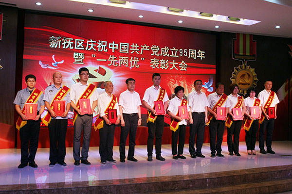 6月30日下午,新?lián)釁^(qū)召開慶祝中國共產(chǎn)黨成立95周年表彰大會,對做出突出貢獻的先進黨組織,優(yōu)秀共產(chǎn)黨員和優(yōu)秀黨務工作者進行表彰。我公司被授予“先進黨組織”榮譽稱號,任潤東被授予“先進黨務工作者”榮譽稱號,尋藍春、謝淑蘭被授予“優(yōu)秀共產(chǎn)黨員”榮譽稱號。
