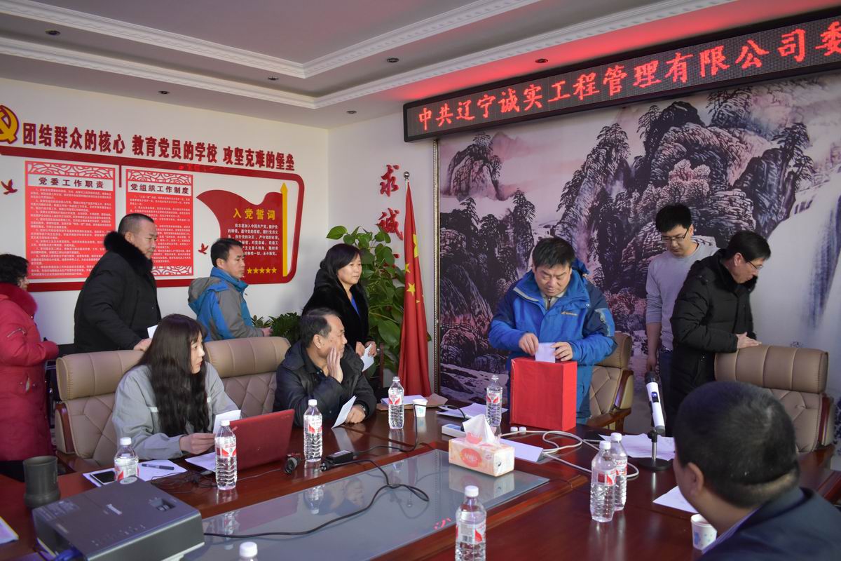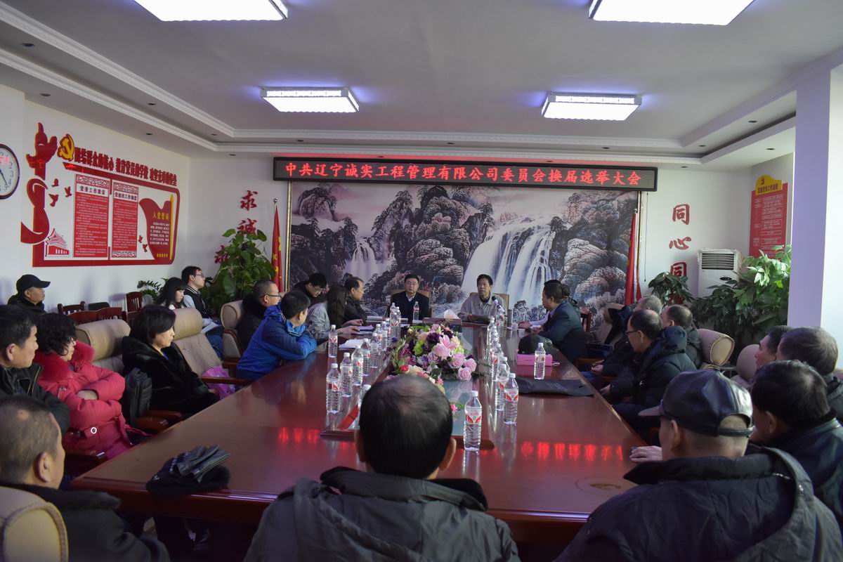 2018年2月7日上午十點,在公司一樓會議室召開了《中共遼寧誠實工程管理有限公司委員會換屆選舉大會》,28名黨員同志參加了此次大會,會議由黨委副書記馮玉琢主持,新?lián)釁^(qū)委組織部任部長及馮疆偉出席了此次會議。