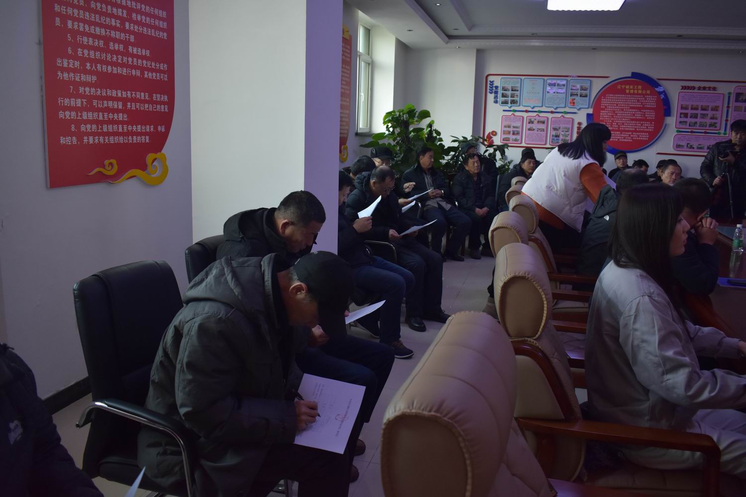 會上首先由張冠楠同志宣讀了新工委字【2019】1號文件《關(guān)于同意中共遼寧誠實工程管理有限公司委員會選舉書記、副書記的批復(fù)》,接著趙紫伊同志向大會介紹書記、副書記候選人情況并通過,鄧戎龍同志宣讀選舉辦法并通過,大會通過了尋藍(lán)春同志為本次選舉工作的監(jiān)票人,鄧戎龍、趙紫伊兩位同志為本次選舉工作的計票人,在監(jiān)票人尋藍(lán)春的組織下,參會黨員差額選舉產(chǎn)生了中共遼寧誠實工程管理有限公司新的書記和副書記。選舉結(jié)果:趙劍平為黨委書記,任潤東為黨委副書記。目前新的黨委由5名委員組成,分別是任潤東、張冠楠(女)、趙劍平、馬駿、劉興善。其中設(shè)書記1名,副書記1名。老黨委書記講話,新、老兩位書記進行工作交接儀式,最后新黨委書記在大會上作了表態(tài)發(fā)言。
