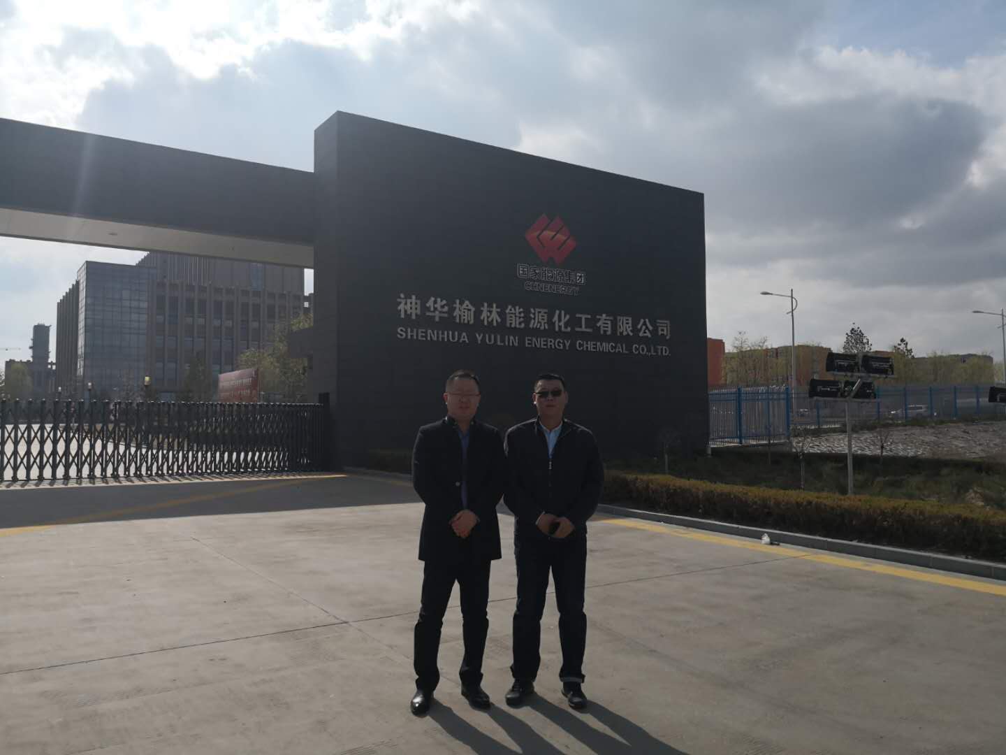 公司董事長兼黨委書記趙劍平(左一)李雙龍(右一)項(xiàng)目總監(jiān),視察神華榆林項(xiàng)目部