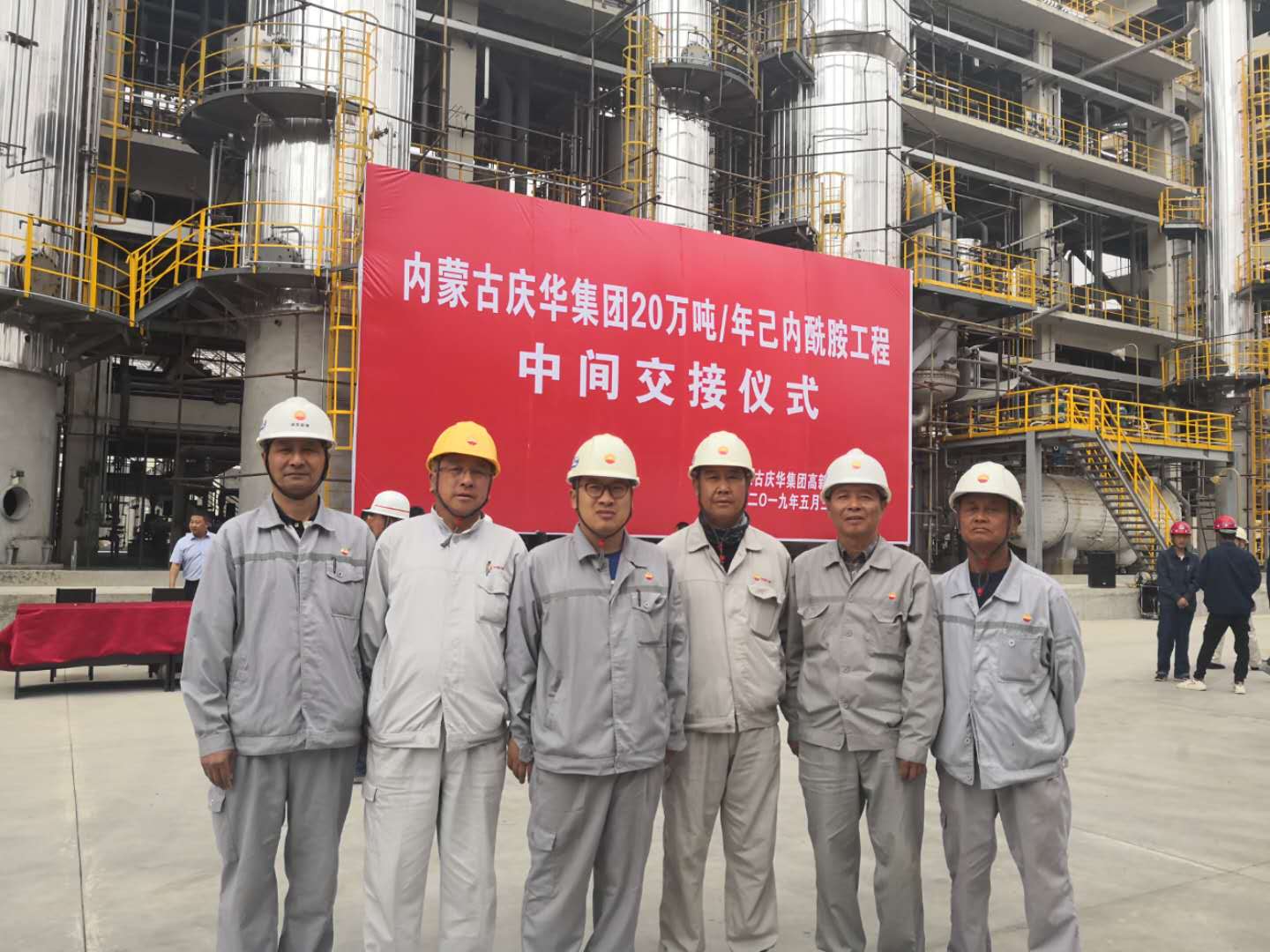 5月31日上午10:00內(nèi)蒙古慶華集團(tuán)20萬(wàn)噸/年己內(nèi)酰胺工程進(jìn)行了中間交接,遼寧誠(chéng)實(shí)騰格里項(xiàng)目部總監(jiān)孫典在交接儀式上進(jìn)行了簽字。交接的部分裝置有:精制、肟化、硫銨車間。
