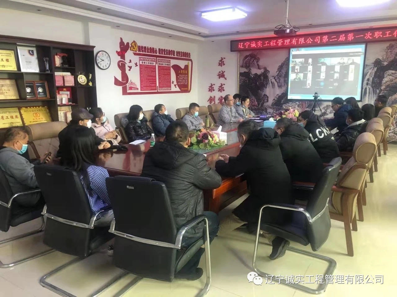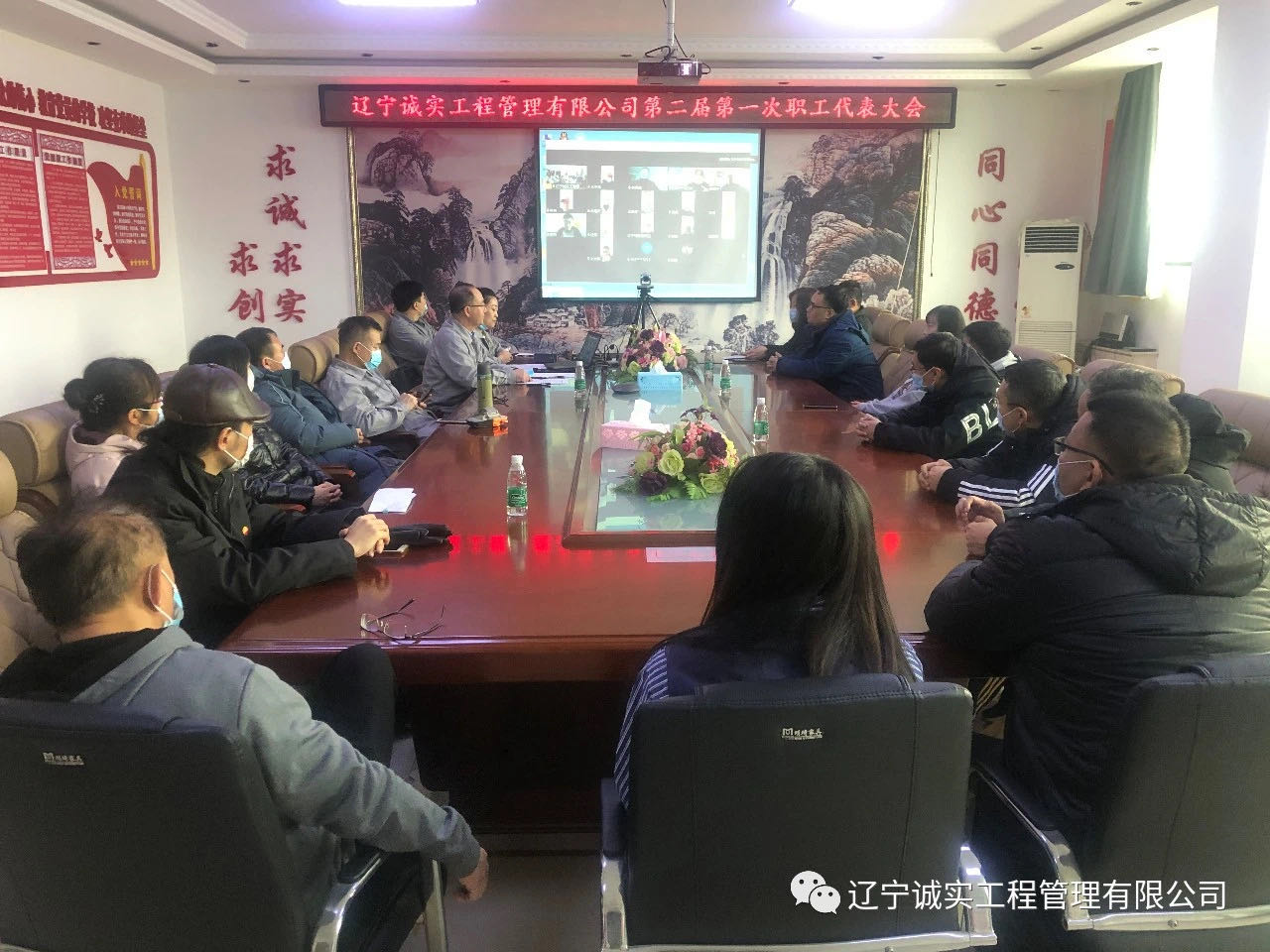 2021年2月9日早9:30在公司一樓會議室召開了遼寧誠實工程管理有限公司第二屆第一次職工代表大會,由于工作原因,一部分職工代表無法回撫,代表會結(jié)合線上、線下共同召開。共計40位職工代表,實到會議37位(其中線上17位,線下20位)。出席此次會議的領(lǐng)導(dǎo)有:總經(jīng)理田立奎、副總經(jīng)理任潤東(美亞項目總監(jiān)理工程師)、副總經(jīng)理鄧戎龍。